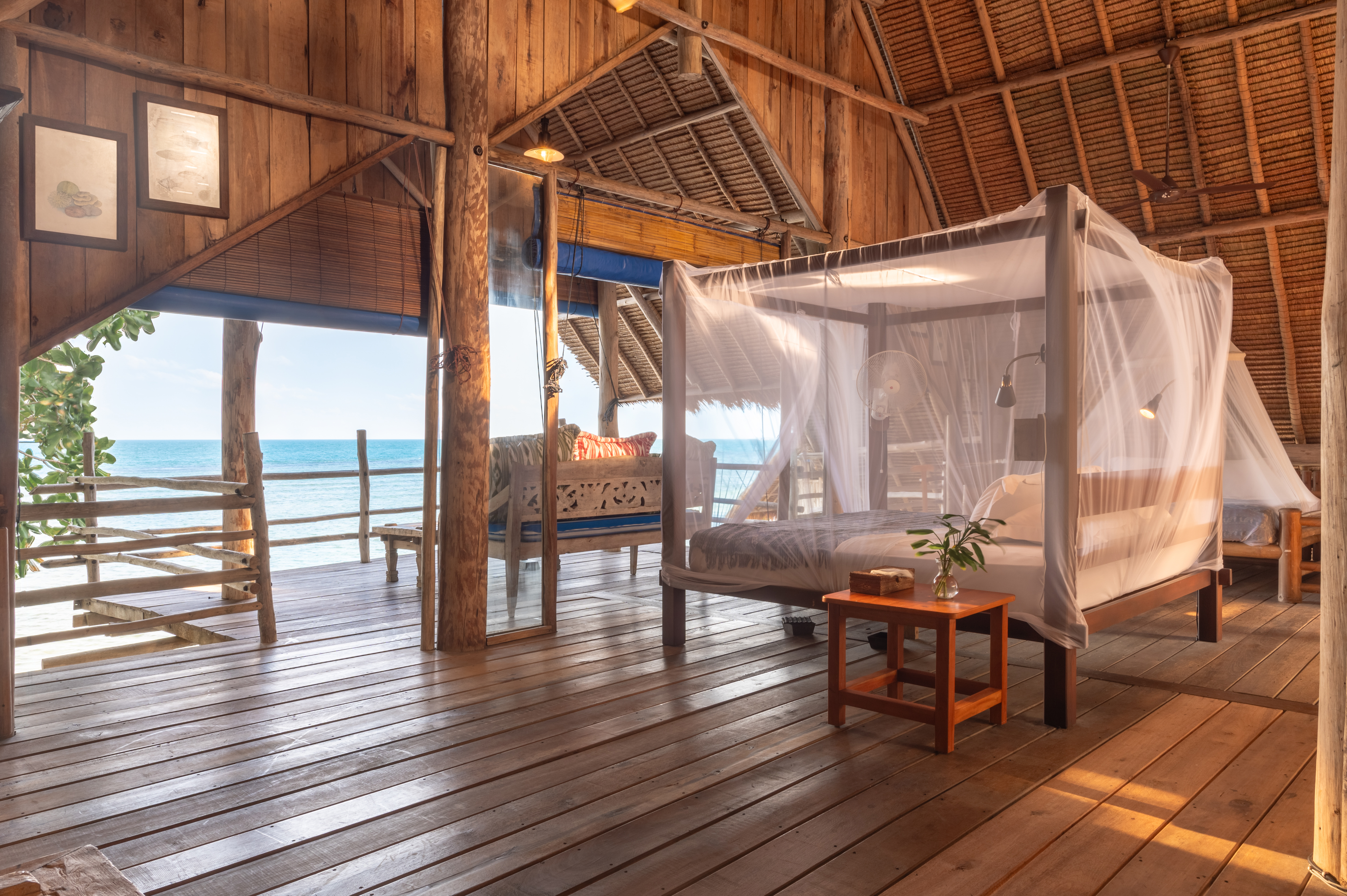 Driftwood Palaces 2 to 5 are constructed completely from driftwood salvaged from the sea. The open floor plan and high ceilings catch the sea breeze. Relax in two double beds during your stay.