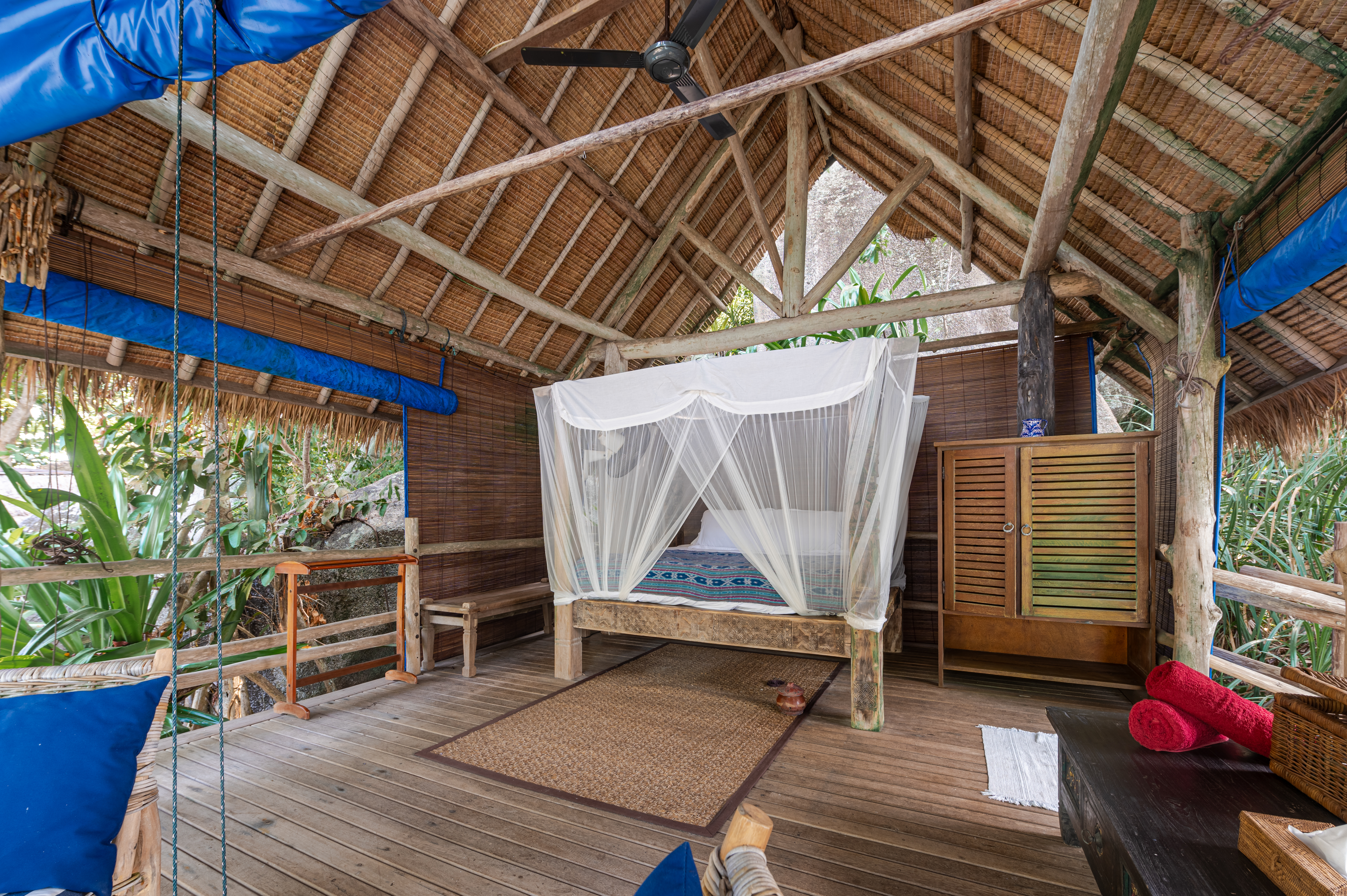 Driftwood Palaces 2 to 5 are constructed completely from driftwood salvaged from the sea. The open floor plan and high ceilings catch the sea breeze. Relax in two double beds during your stay.