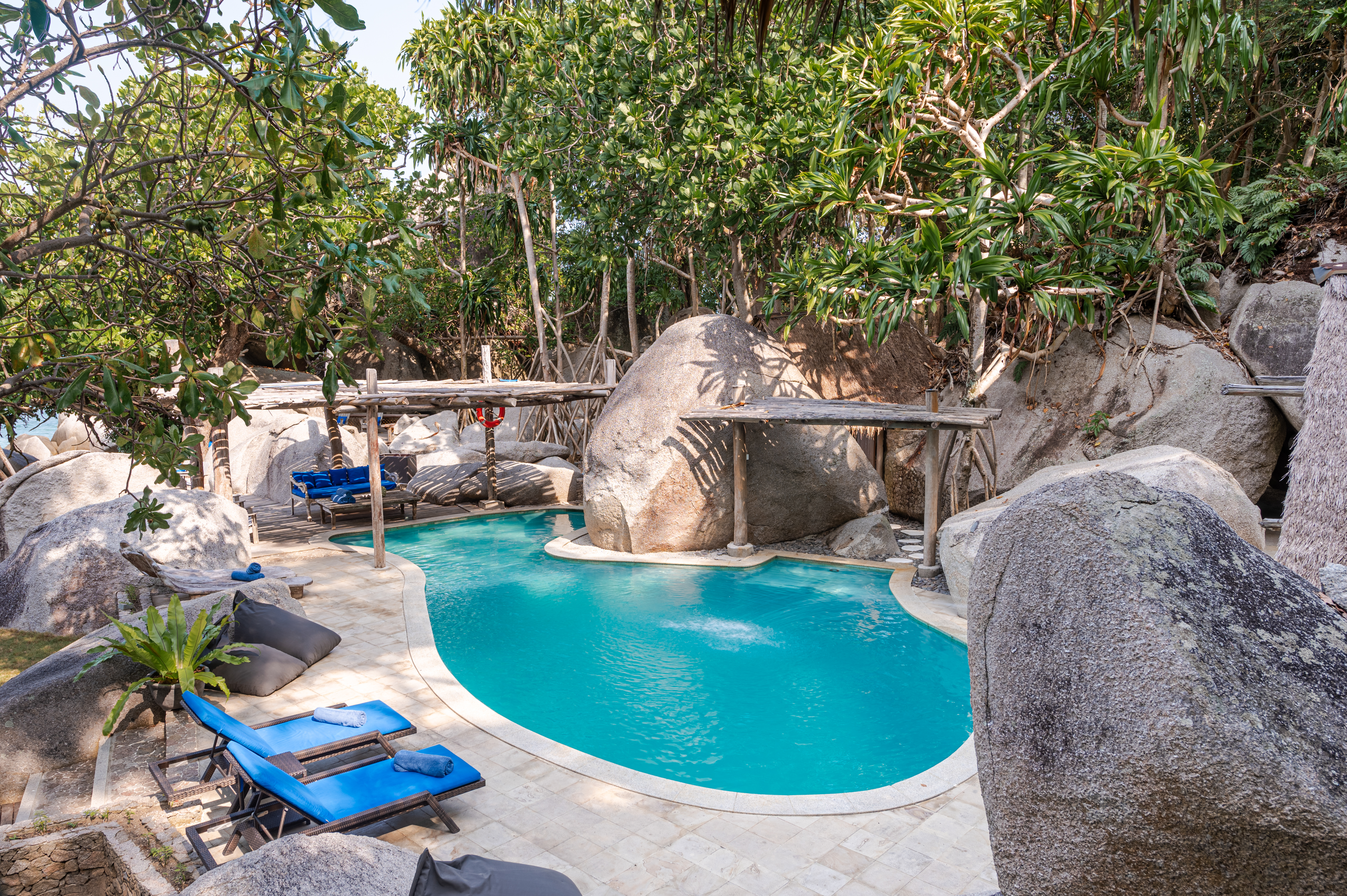 Pulau Pangkil Kecil is a delightful little island in Indonesia located close to Singapore. 'Pulau' means 'island' and 'Kecil' means 'small' in Indonesian. When you hire Pangkil you get everything: all the driftwood palaces (our luxury accommodation), the bar, the sound system, the pool, kayaks, snorkelling equipment, speedboats, kitchen, and more than twenty staff to provide you with excellent service.