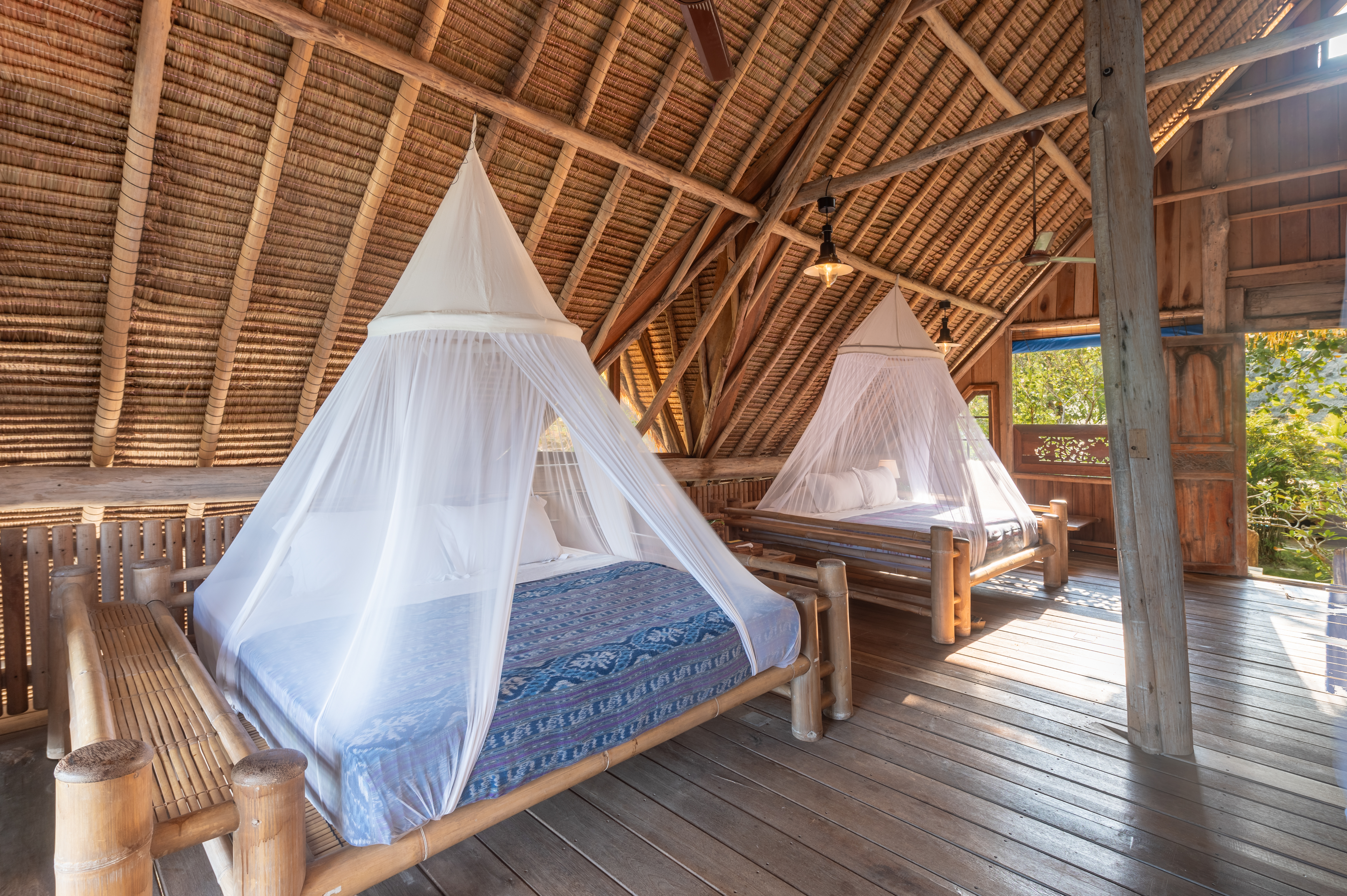 Driftwood Palaces 2 to 5 are constructed completely from driftwood salvaged from the sea. The open floor plan and high ceilings catch the sea breeze. Relax in two double beds during your stay.